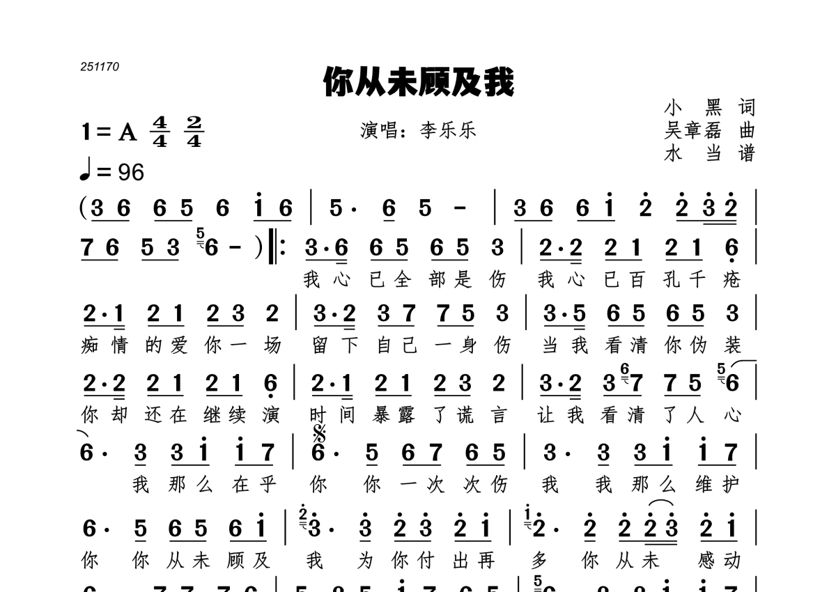 你从未顾及我简谱 - 李乐光演唱
