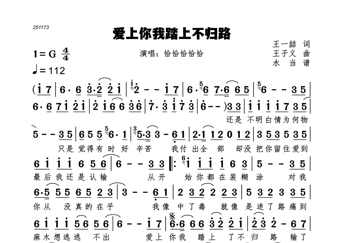爱上你我踏上不归路简谱 - 恰恰恰恰恰演唱