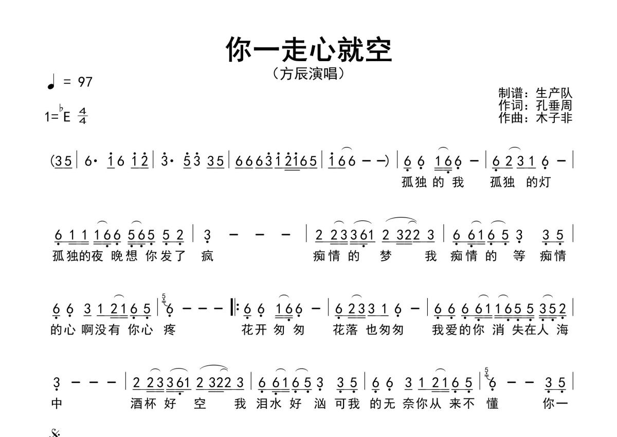 方辰《你一走心就空》简谱 - 原版简谱