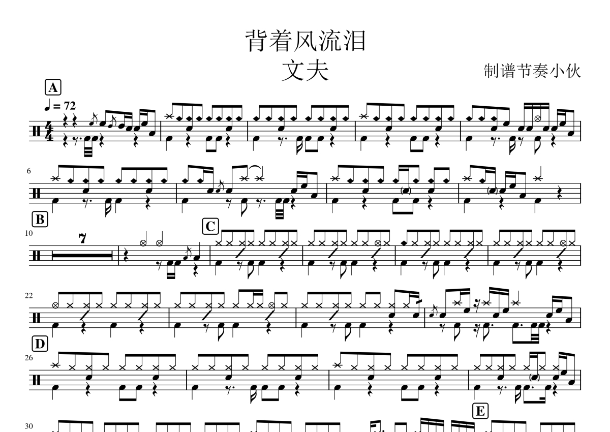 背着风流泪架子鼓谱 - 文夫演唱
