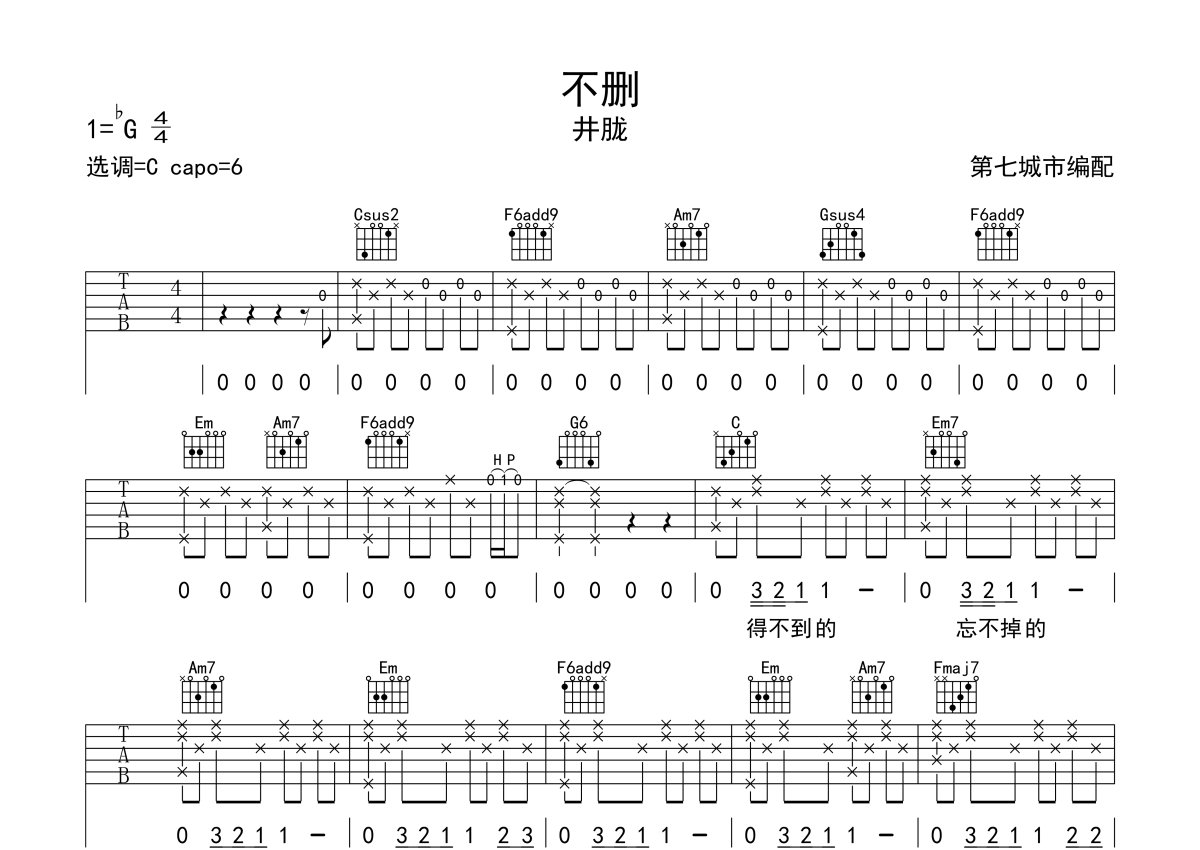 井胧《不删》吉他谱 - C调弹唱六线谱
