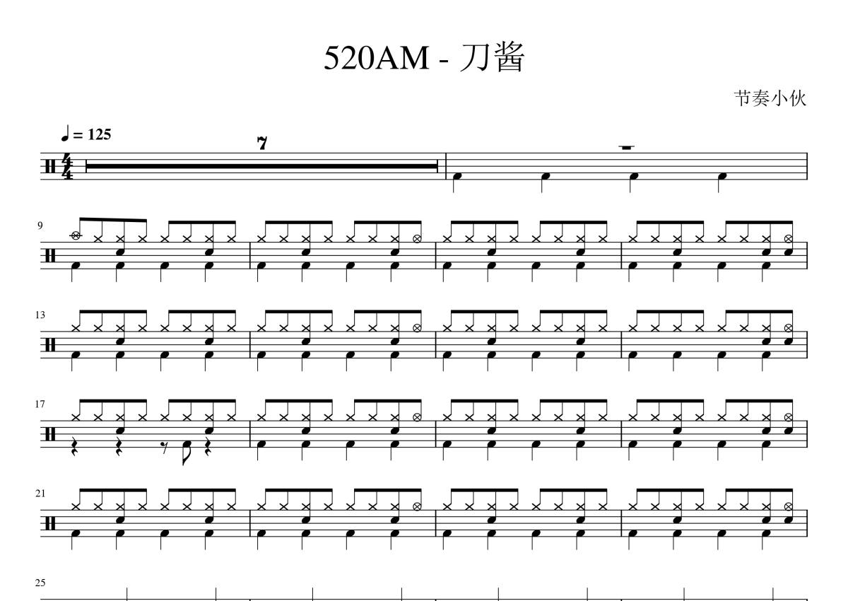 刀酱《520AM - 刀酱-1》架子鼓谱