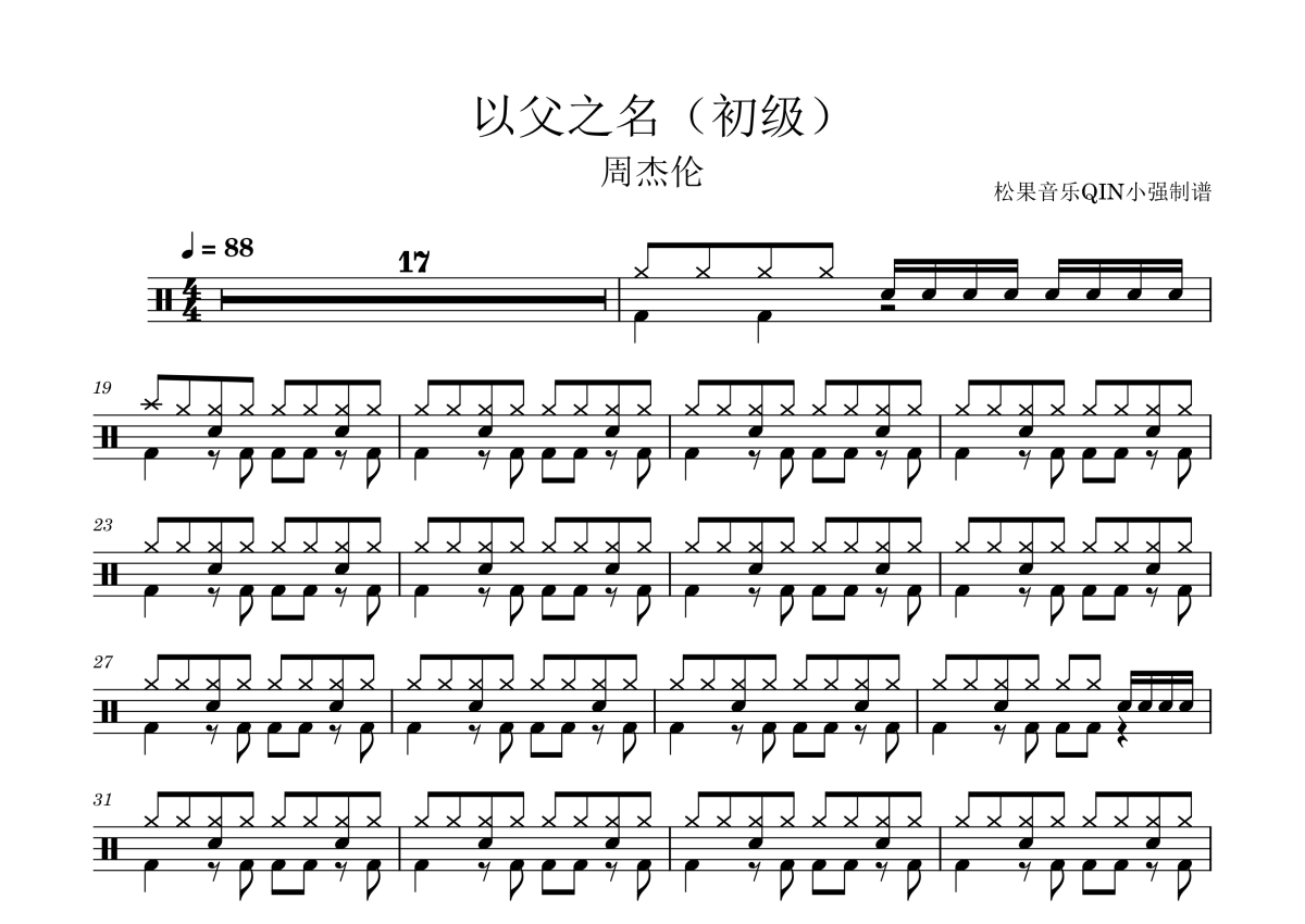 周杰伦《以父之名(初级)》架子鼓谱