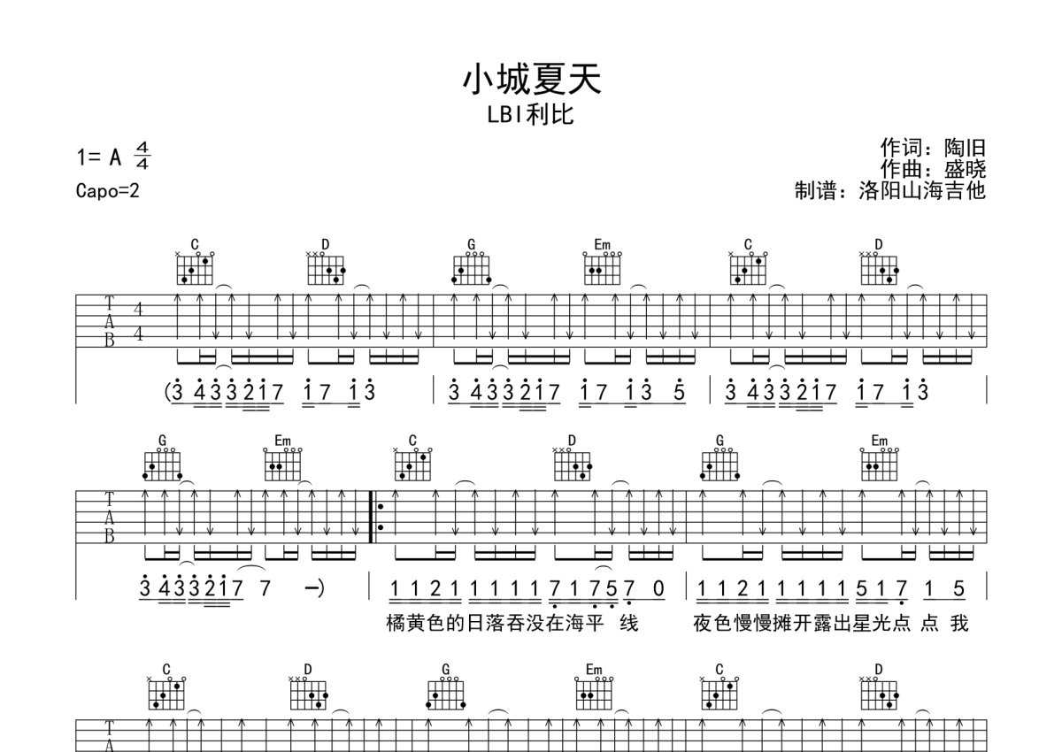 LBI利比《小城夏天》吉他谱 - G调弹唱六线谱