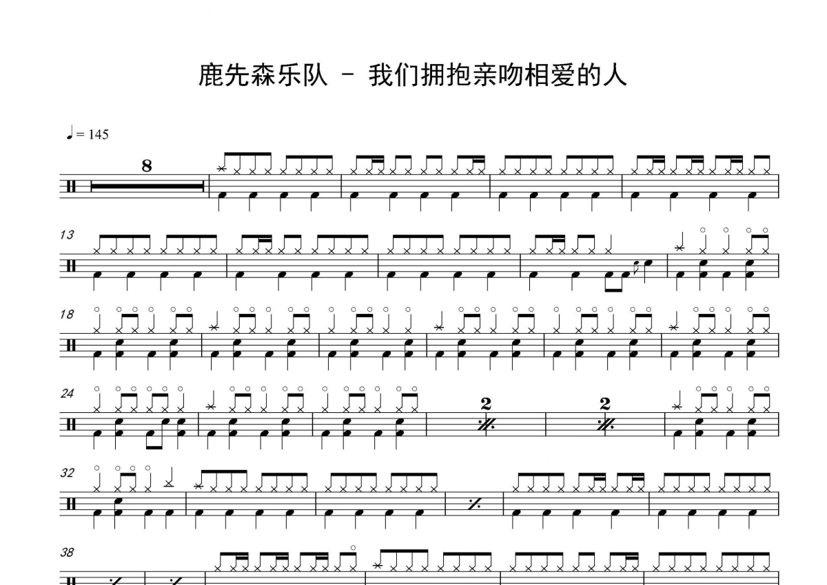 鹿先森乐队《我们拥抱亲吻相爱的人》架子鼓谱