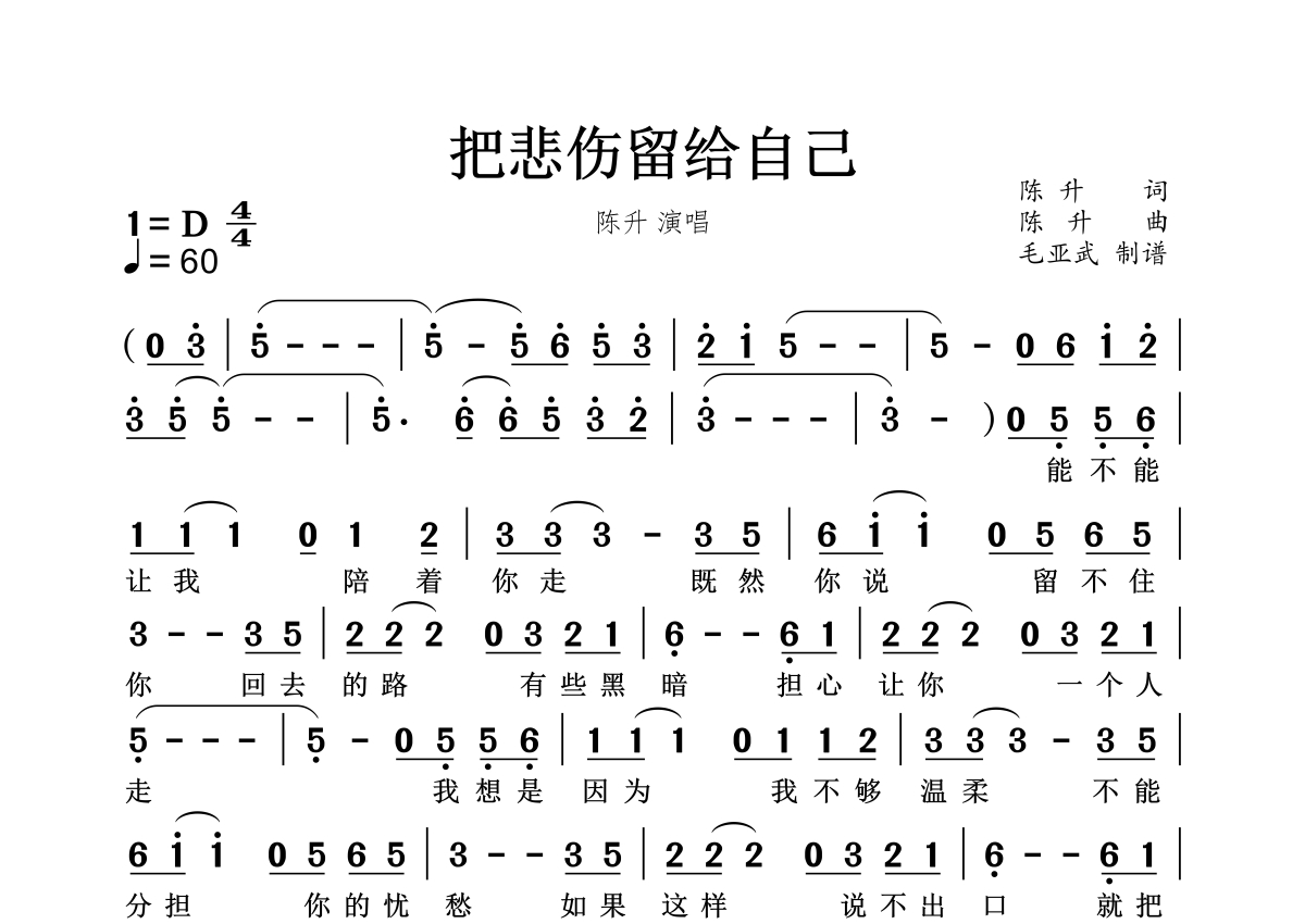 把悲伤留给自己简谱 - 陈升演唱