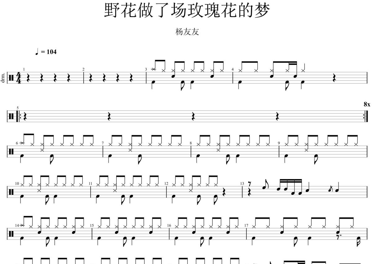 《野花做了场玫瑰花的梦》架子鼓谱 - 杨友友