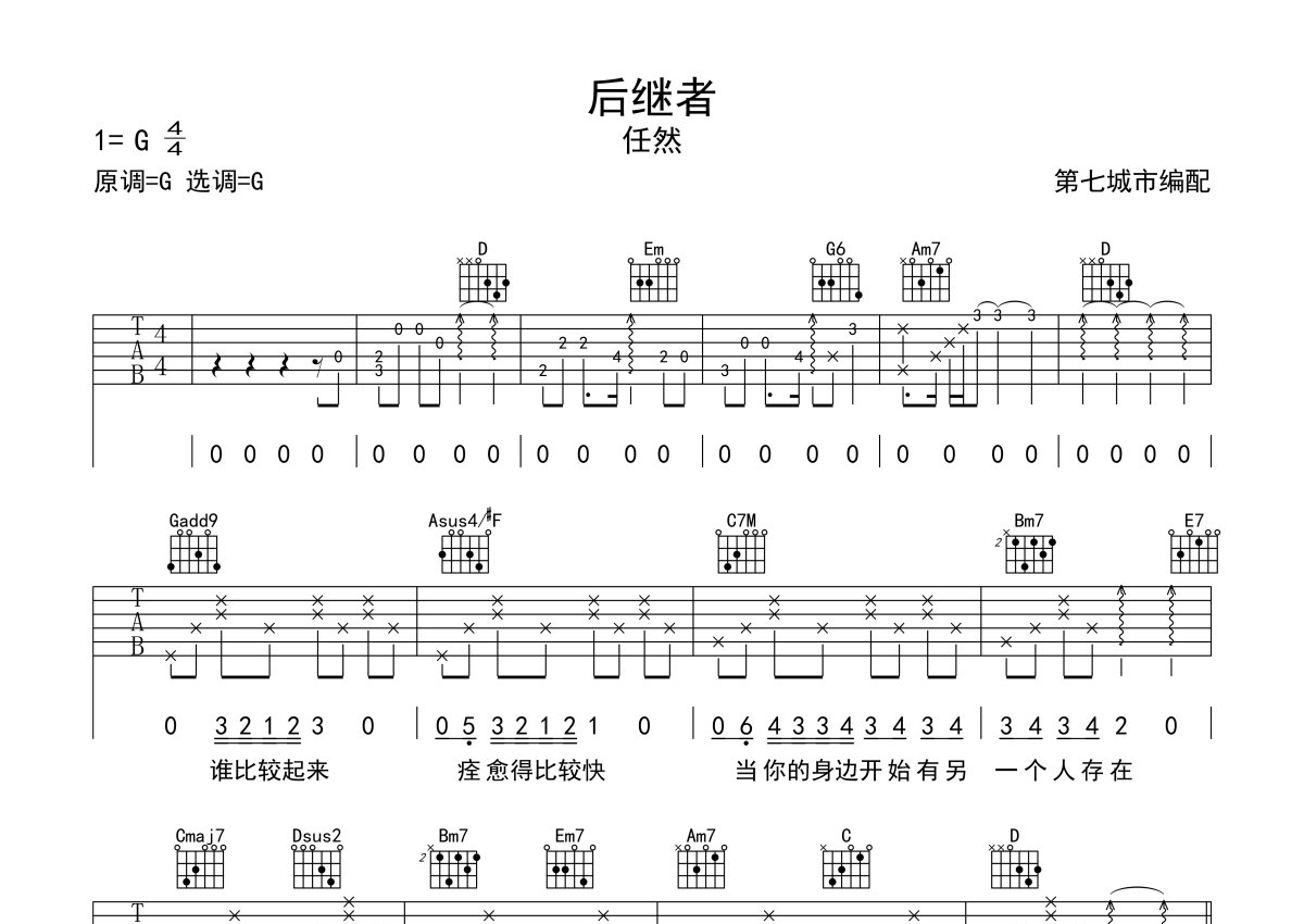 任然《后继者》吉他谱 - G调弹唱六线谱