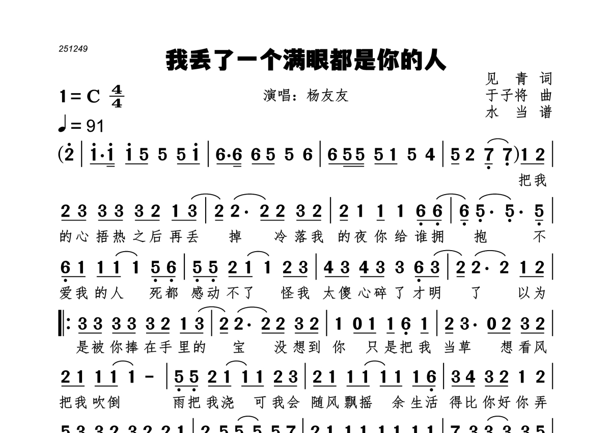我丢了一个满眼都是你的人简谱 - 杨友友演唱