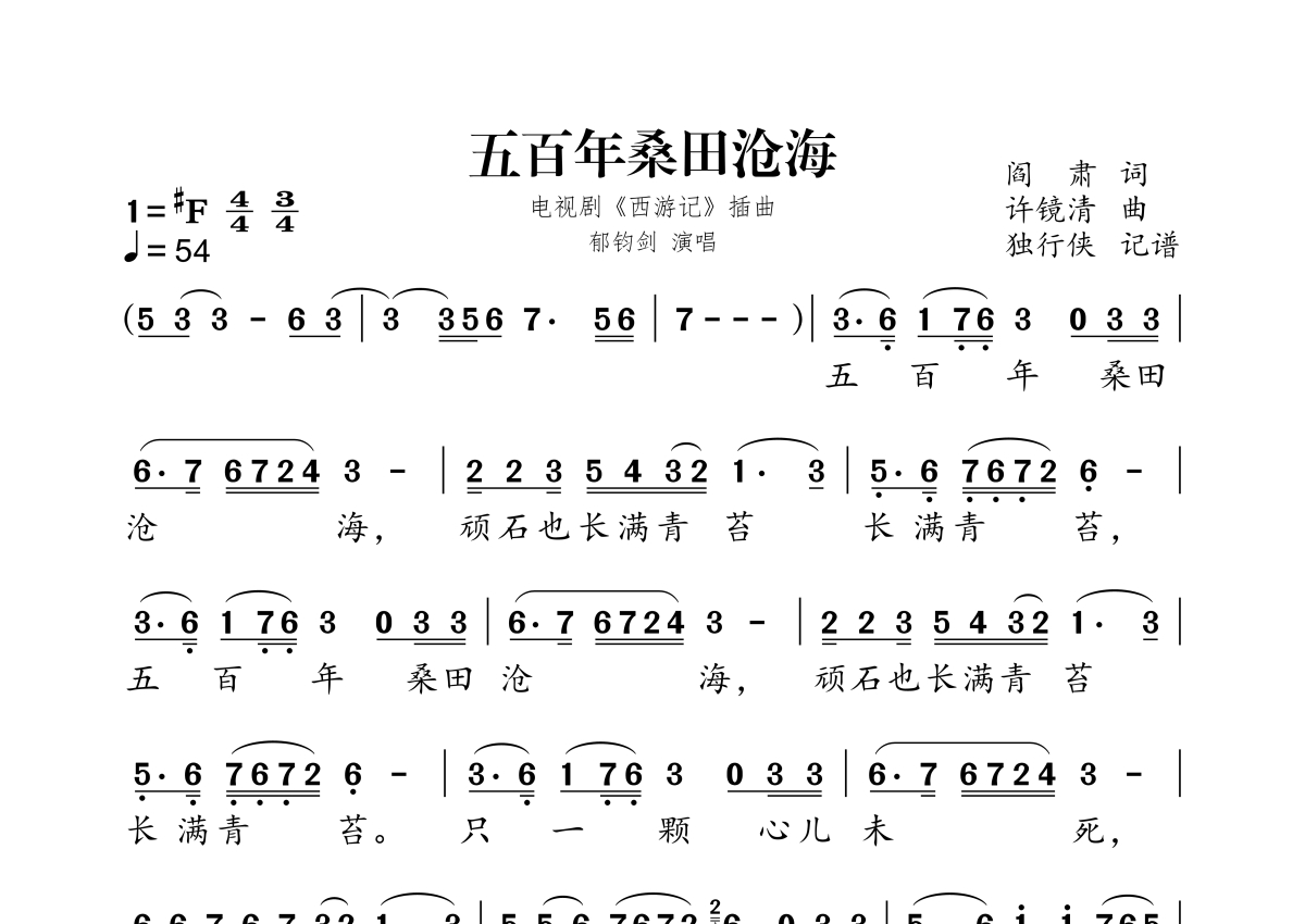 五百年桑田沧海简谱 - 郁钧剑演唱