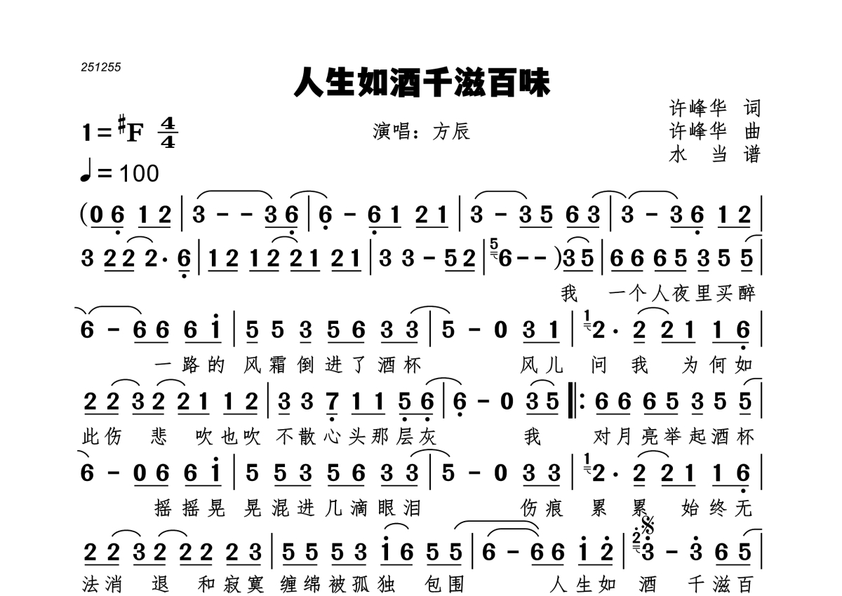 人生如酒千滋百味简谱 - 方辰演唱