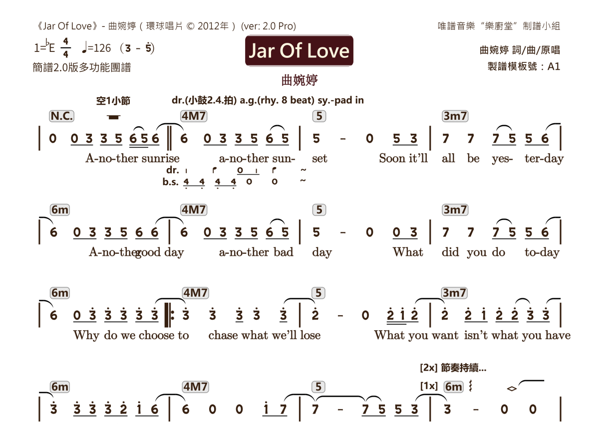 曲婉婷《Jar of love》乐队总谱 - 2.0版多功能团谱