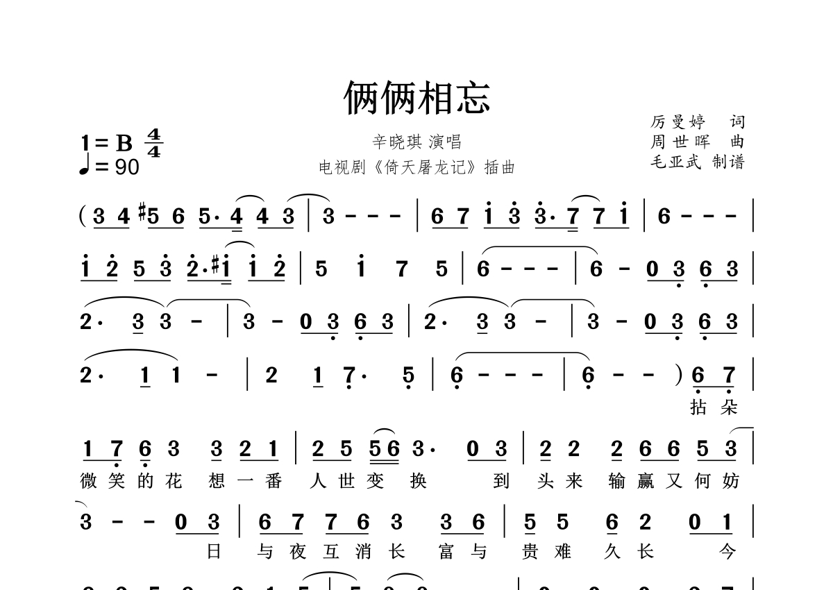 俩俩相忘简谱 - 辛晓琪演唱