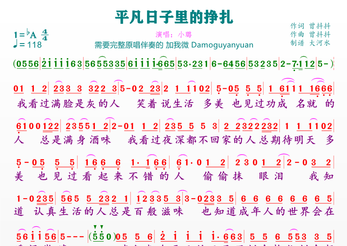 平凡日子里挣扎简谱 - 小璐演唱