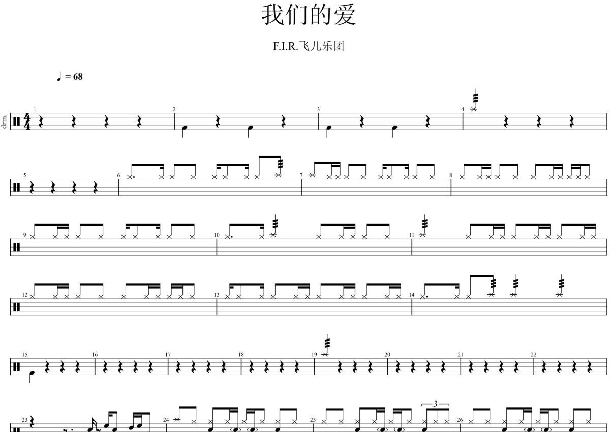F.I.R乐团《我们的爱》架子鼓谱