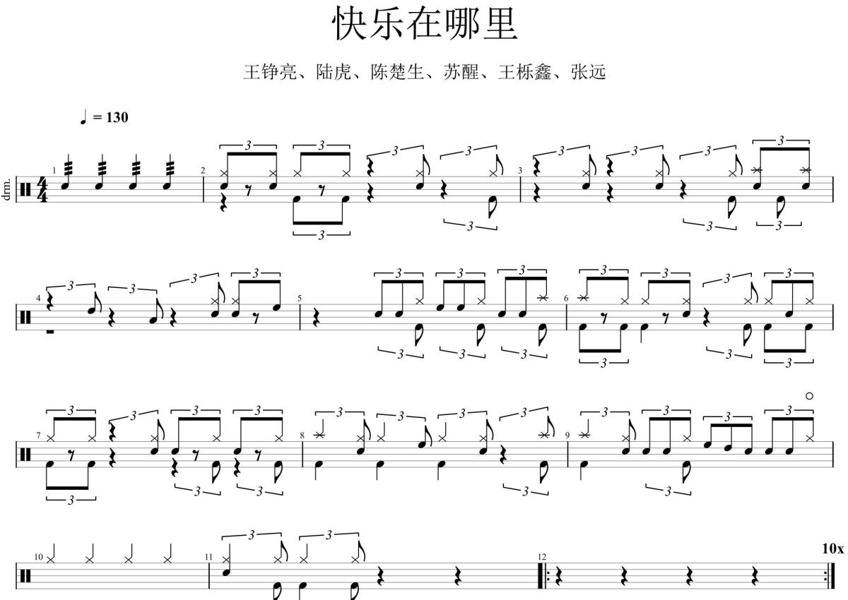 王铮亮、陆虎、陈楚生、苏醒、王栎鑫、张远《快乐在哪里》架子鼓谱
