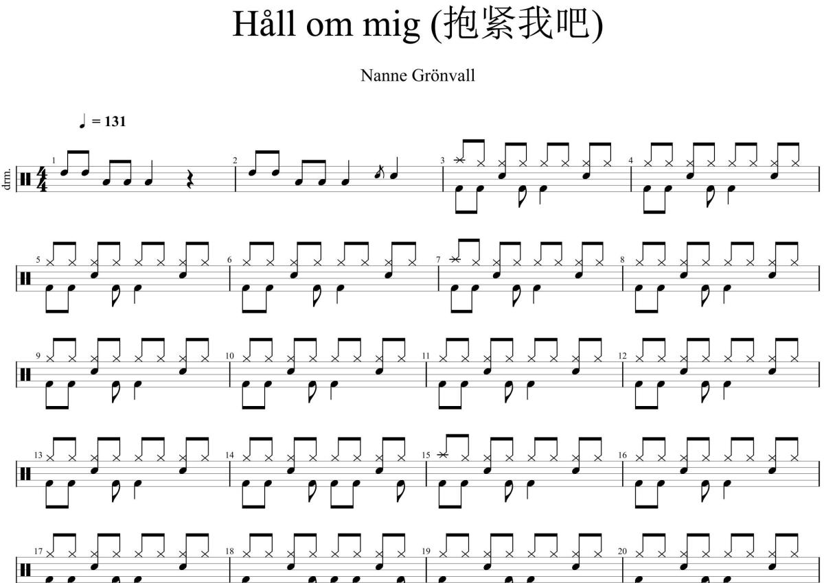 Håll om mig架子鼓谱 - Nanne Grönvall演唱