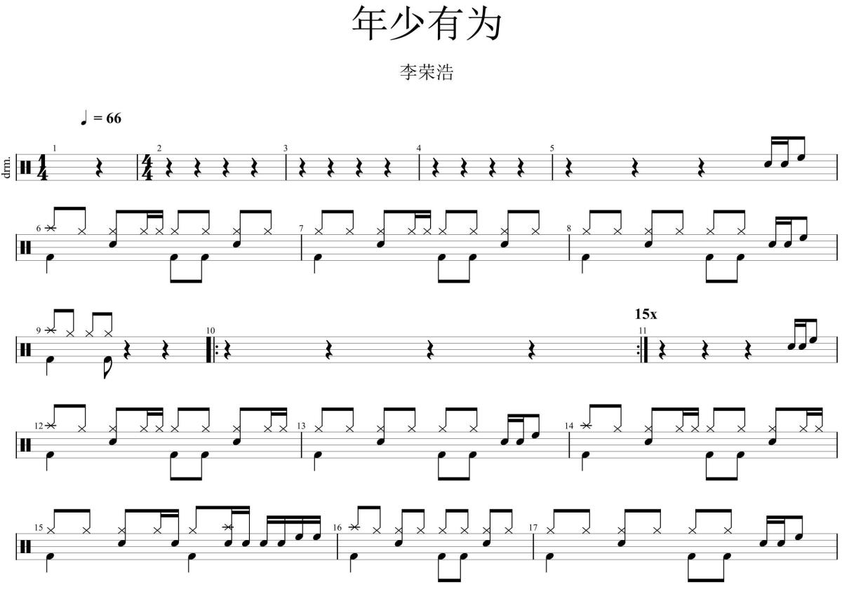 年少有为架子鼓谱 - 李荣浩演唱