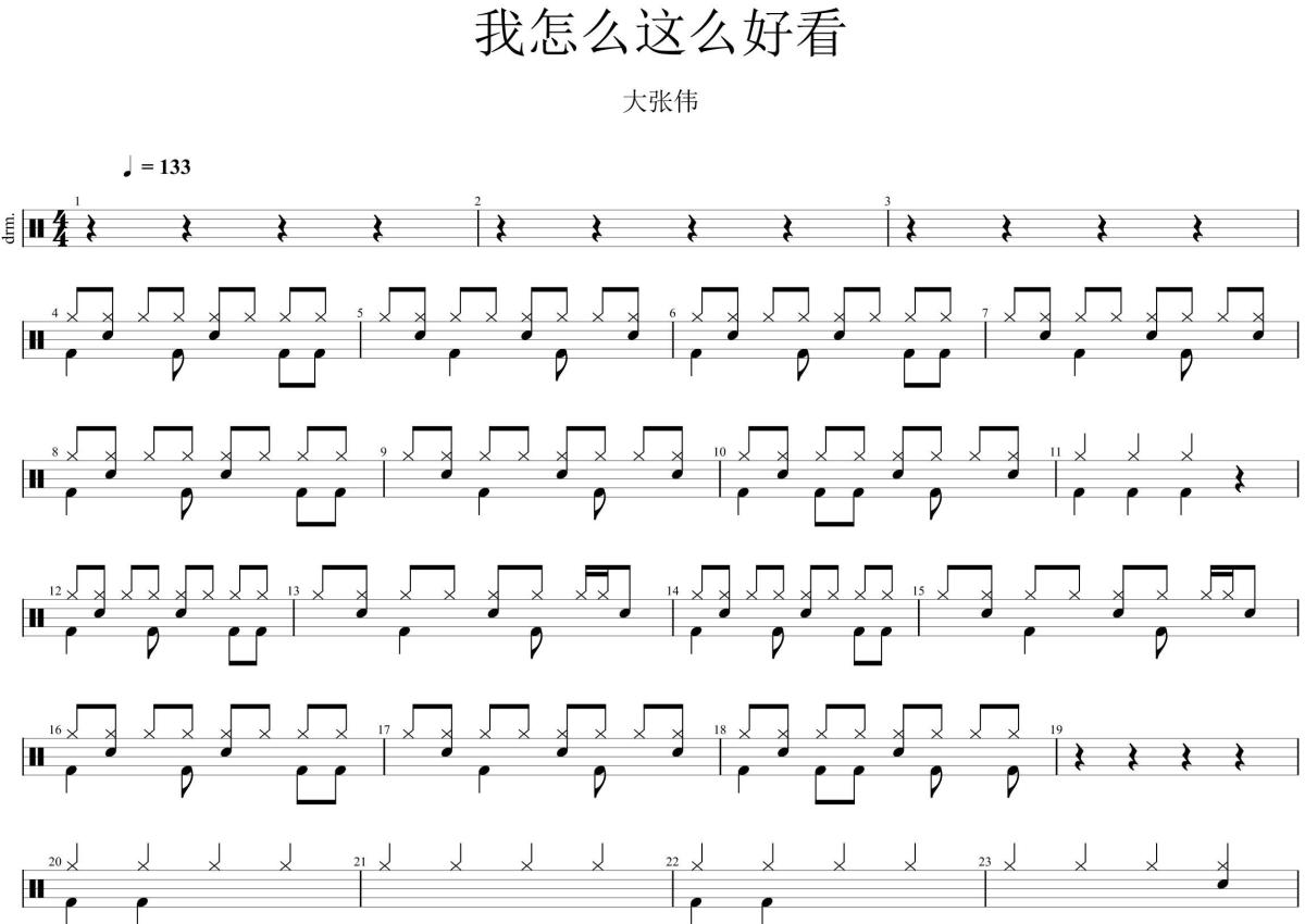 我怎么这么好看架子鼓谱 - 大张伟鼓动飞扬编配