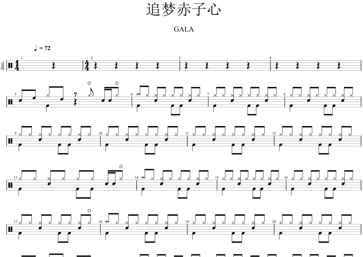 《追梦赤子心》架子鼓谱 - GALA
