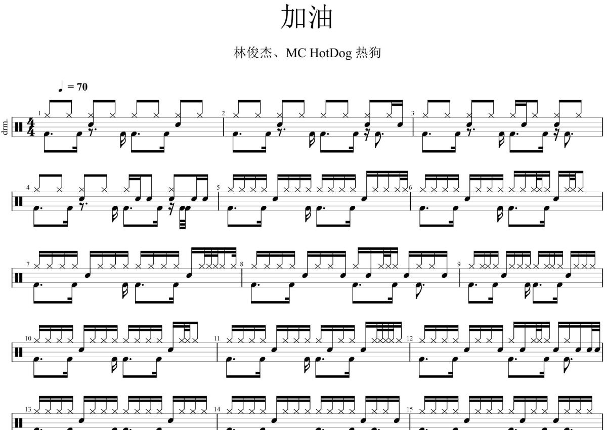 加油架子鼓谱 - 林俊杰、MC HotDog 热狗演唱