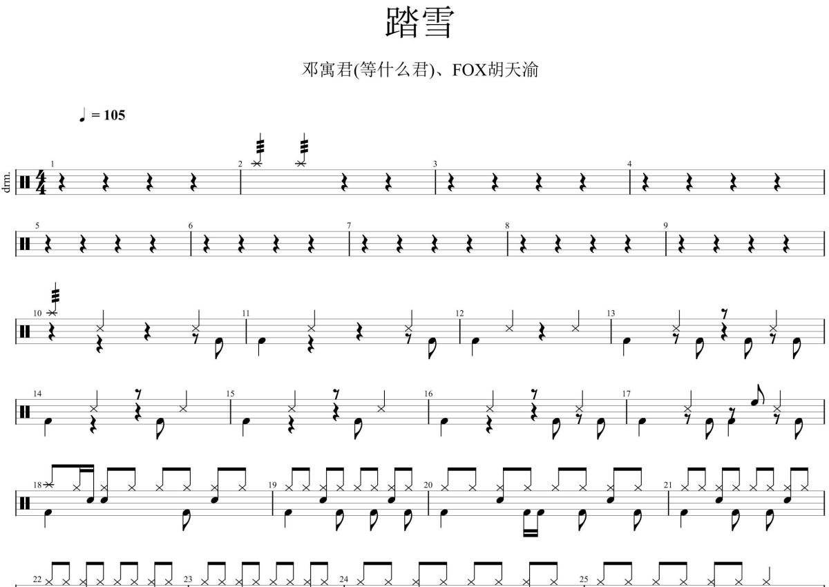 踏雪架子鼓谱 - 邓寓君(等什么君)、FOX胡天渝演唱