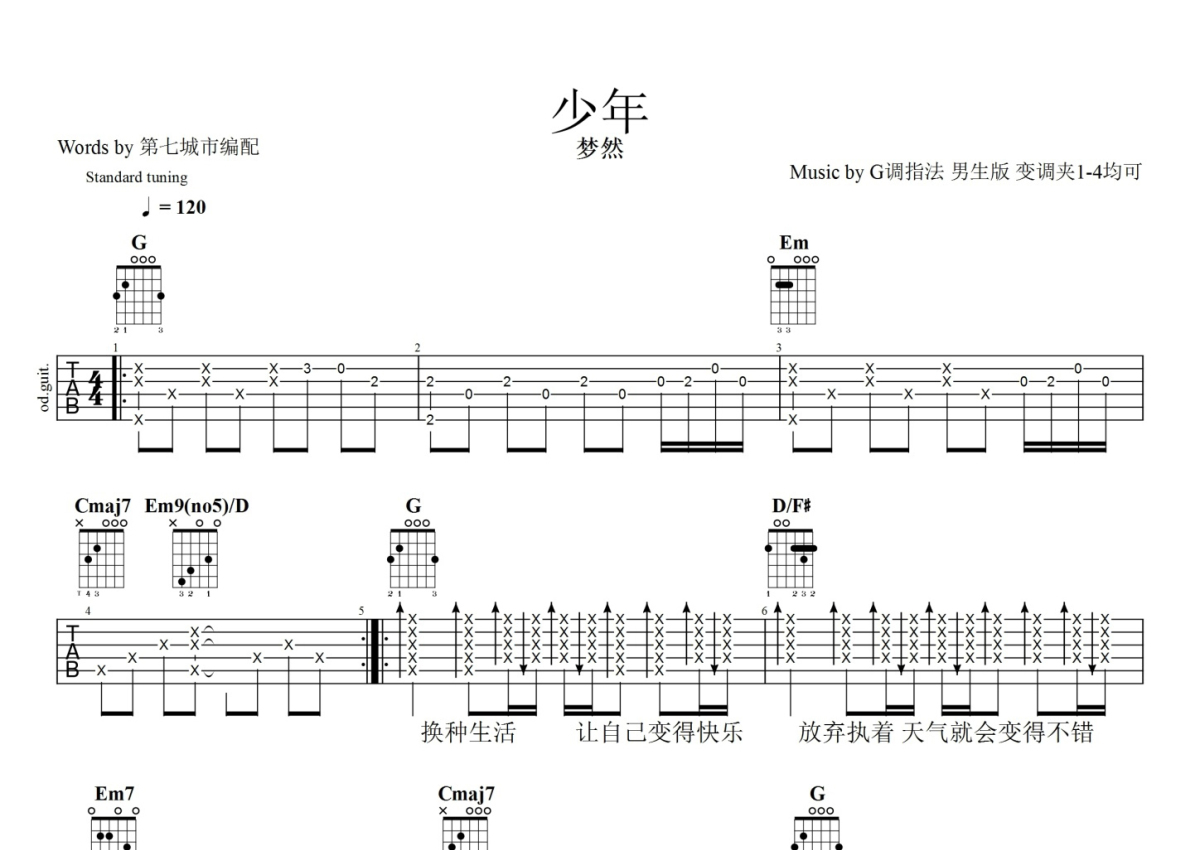 梦然《少年》吉他谱 - 弹唱六线谱