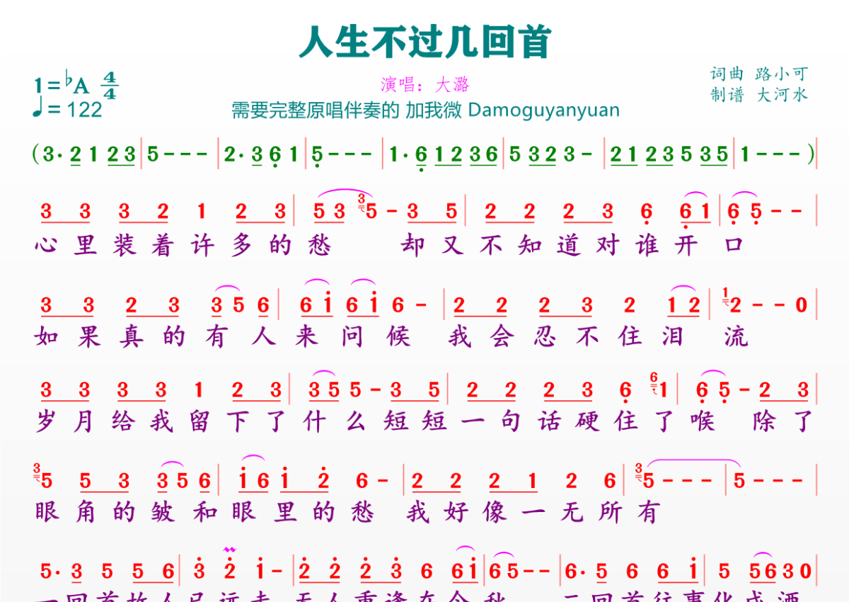 人生不过几回首简谱 - 大 潞演唱