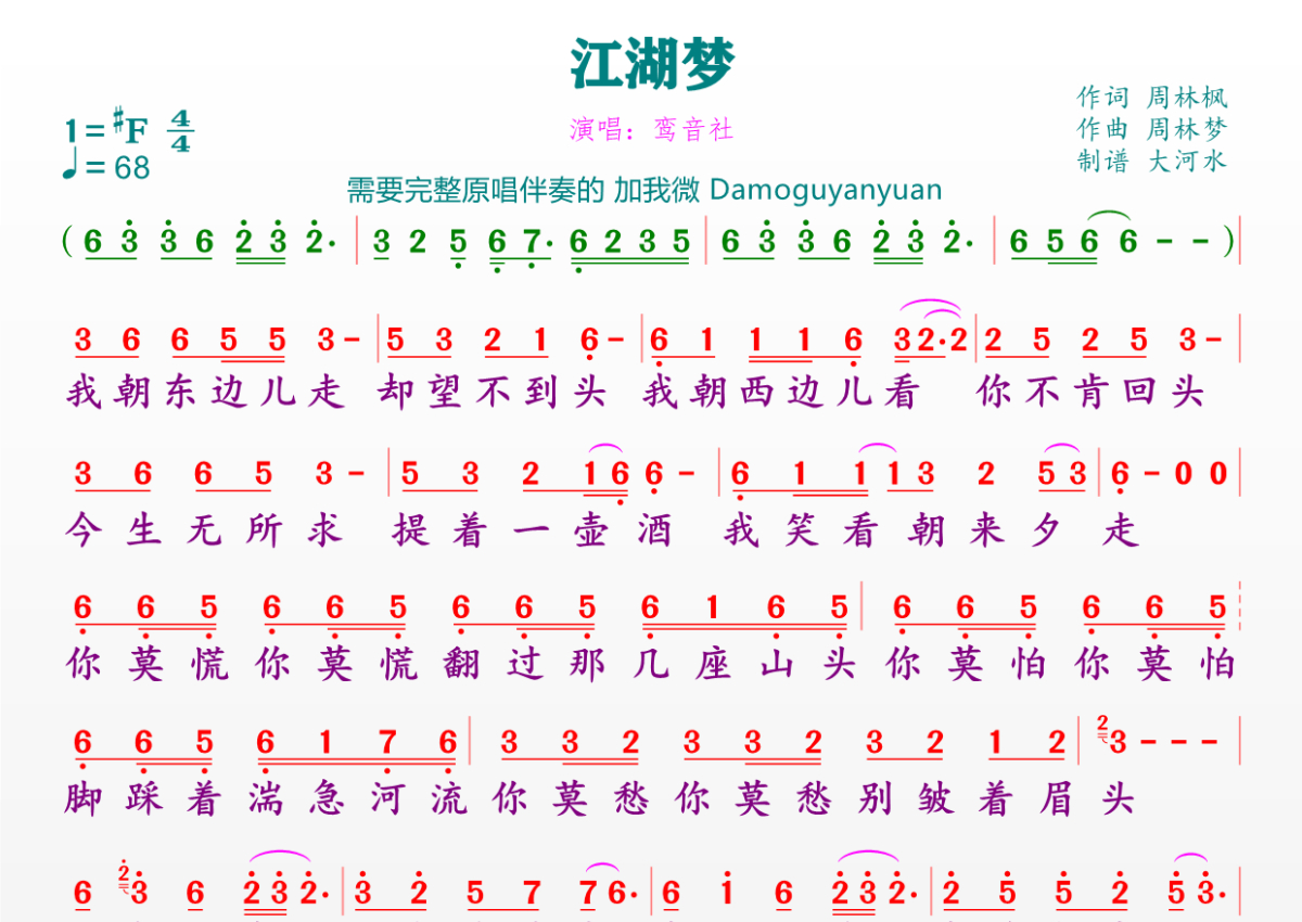 《江湖梦》简谱 - 鸾音社