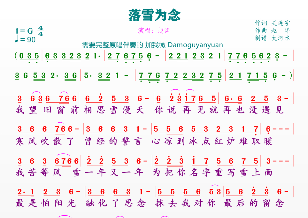 《落雪为念》简谱 - 赵洋