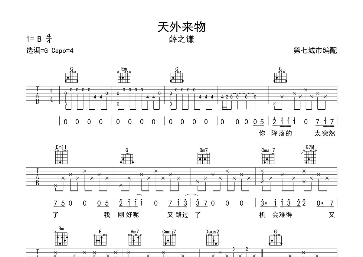 薛之谦《天外来物》吉他谱 - 弹唱六线谱