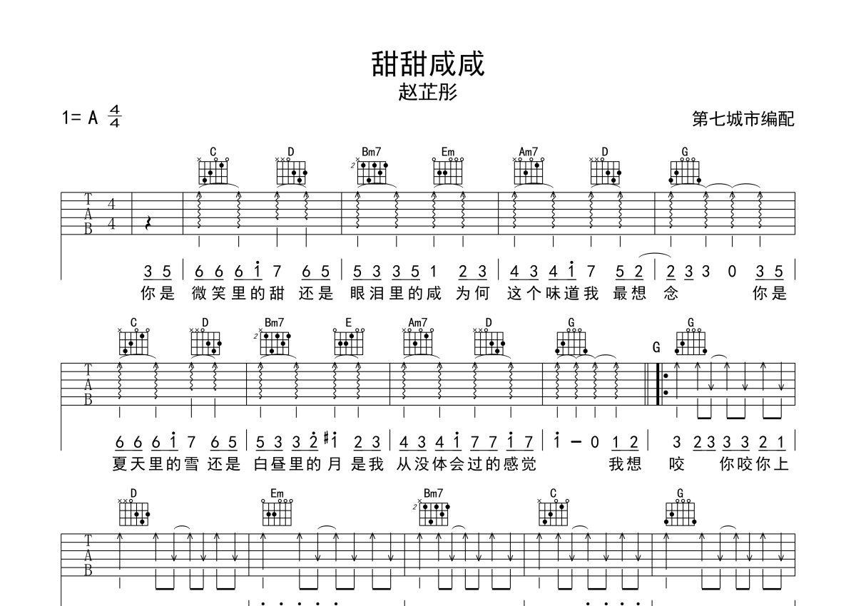 赵芷彤《甜甜咸咸》吉他谱 - G调弹唱六线谱