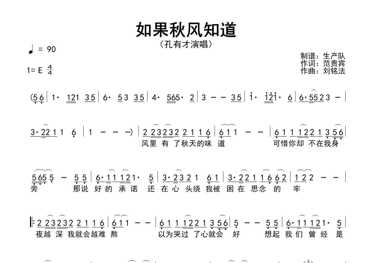 孔有才《如果秋风知道》简谱 - 原版简谱