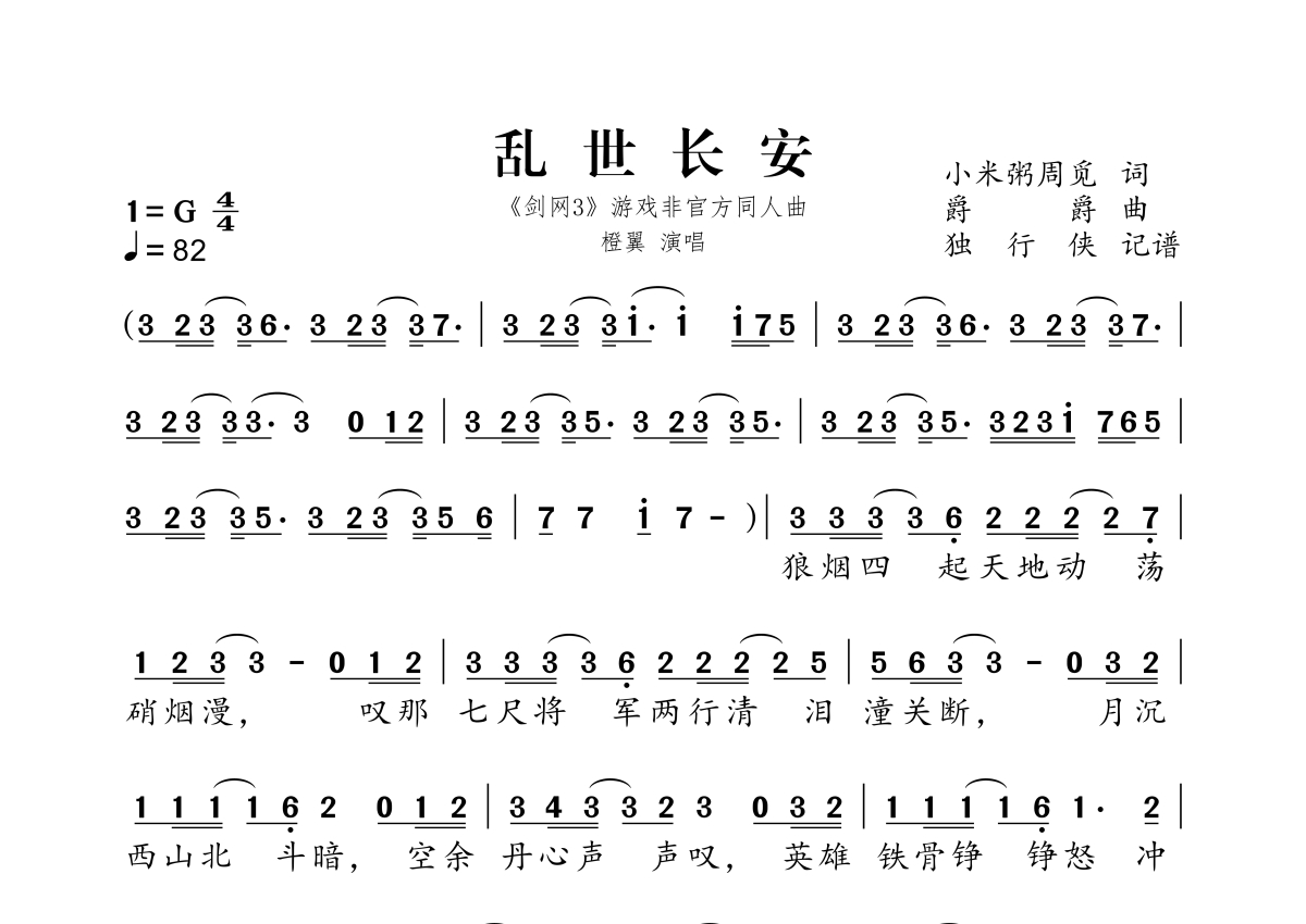 乱世长安简谱 - 橙翼演唱