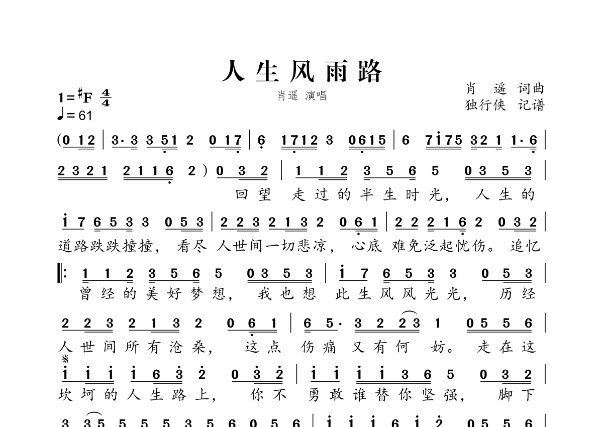 人生风雨路简谱 - 肖遥演唱