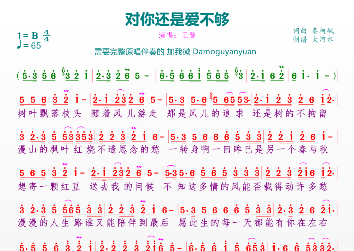 对你还是爱不够简谱 - 王馨演唱