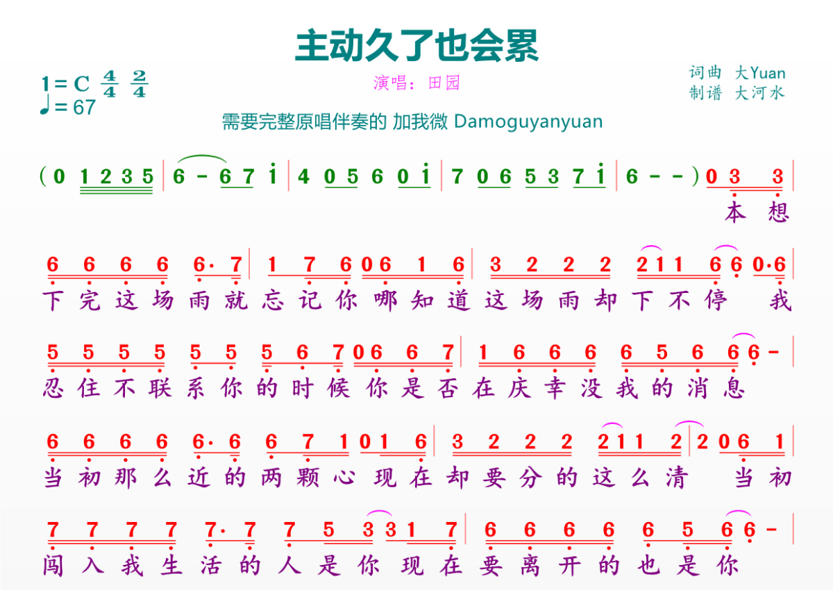 《主动久了也会累》简谱 - 田园