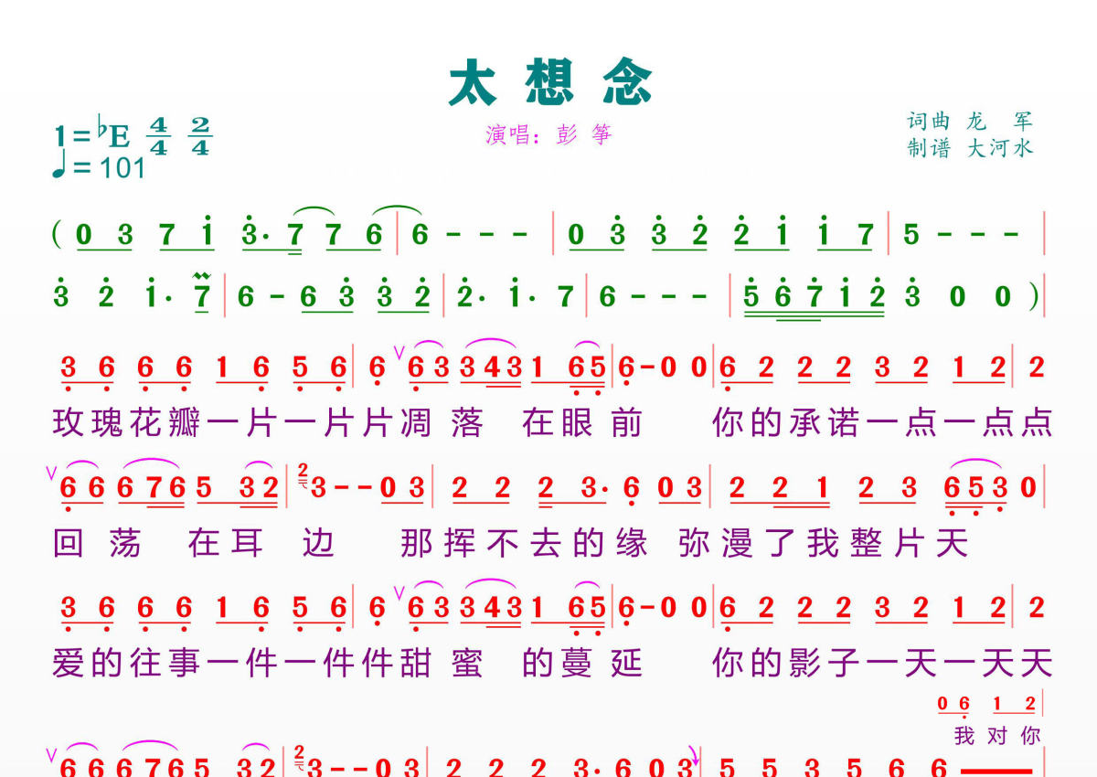 太想念简谱 - 彭筝演唱