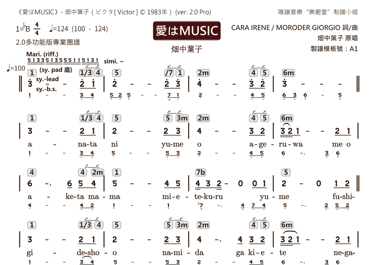 畑中葉子《愛はMUSIC(1983)[日语注音]》乐队总谱 - 2.0版多功能团谱