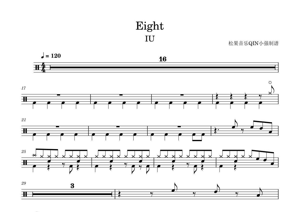 IU《eight》架子鼓谱