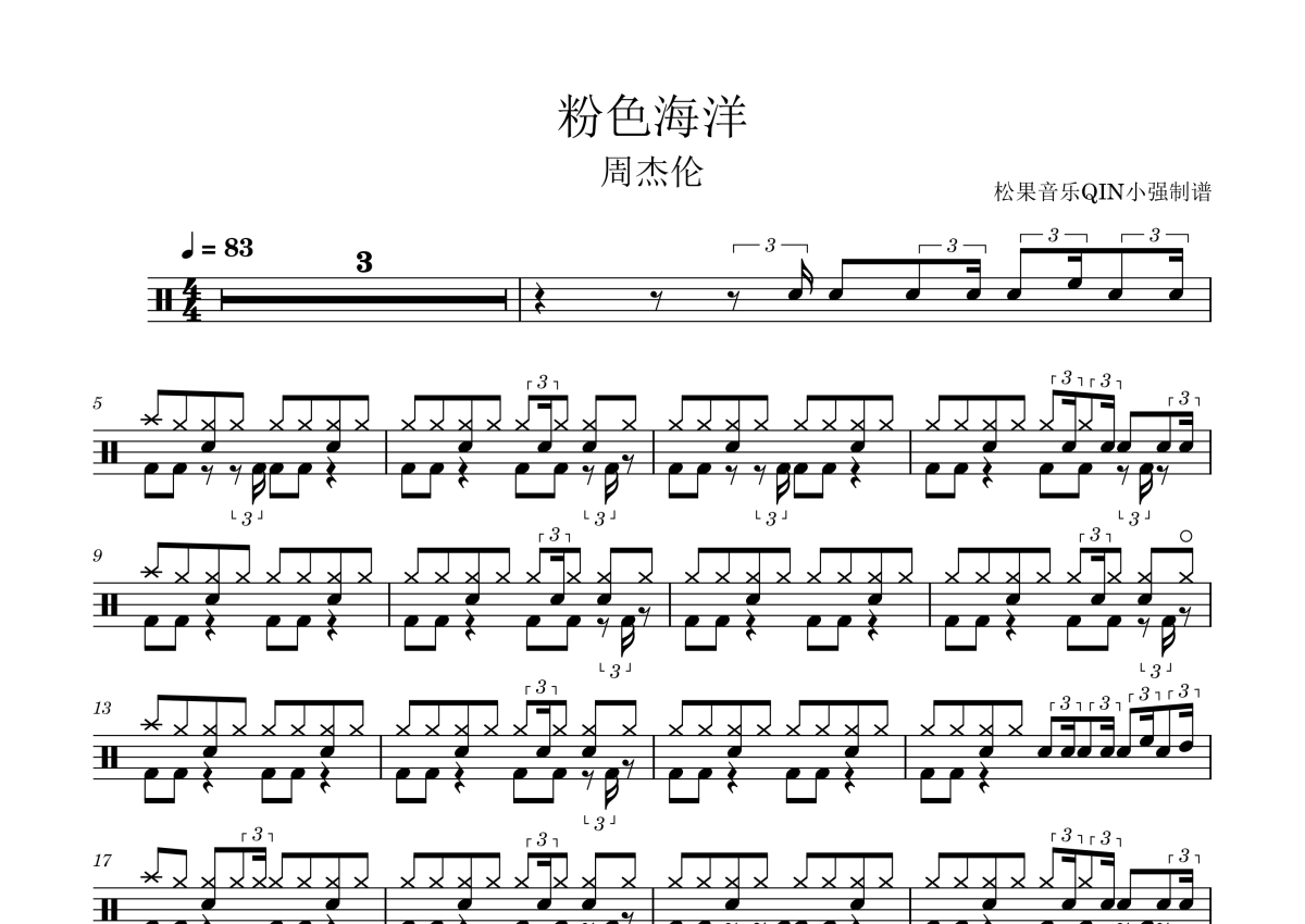 周杰伦《粉色海洋》架子鼓谱