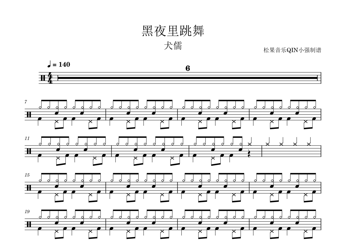 犬儒乐队《黑夜里跳舞》架子鼓谱
