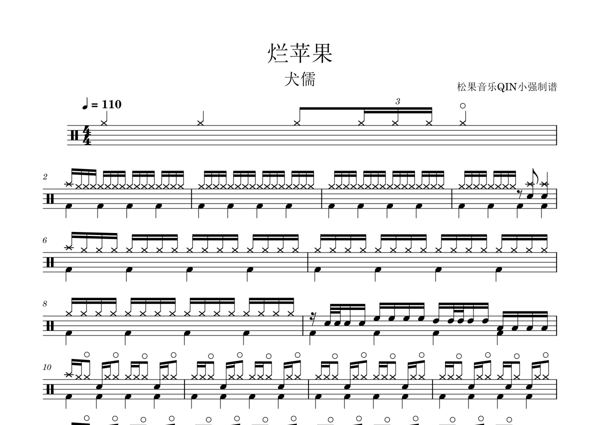 犬儒乐队《烂苹果》架子鼓谱