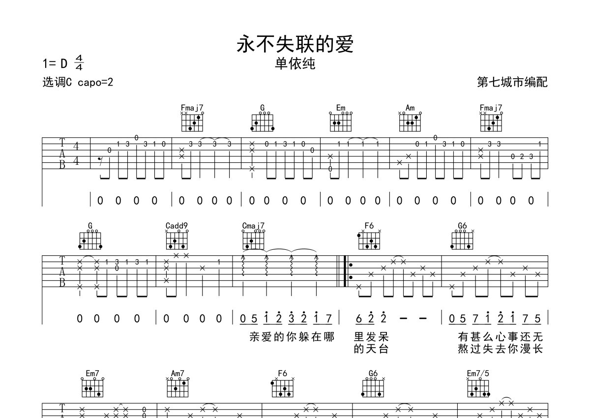 单依纯《永不失联的爱》吉他谱 - C调弹唱六线谱