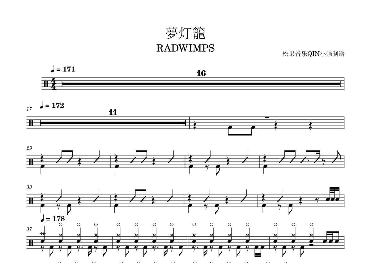 RADWIMPS《梦灯笼》架子鼓谱