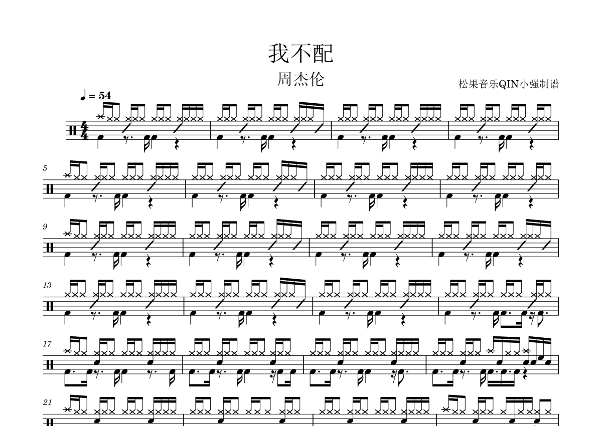 我不配架子鼓谱 - 周杰伦演唱