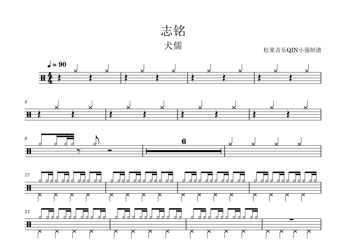 《志铭》是犬儒乐队演唱的一首歌曲,拍号为4/4拍,这份架子鼓谱共有三张高清图谱,图谱由 @松果音乐QIN小强 编配上传,图谱使用五线谱编配,使用这份志铭架子鼓谱,你将能够轻松地敲打出这首犬儒乐队的志铭,快来尝试吧。《志铭》,由 犬儒乐队 演唱,收录于《犬儒》专辑中。