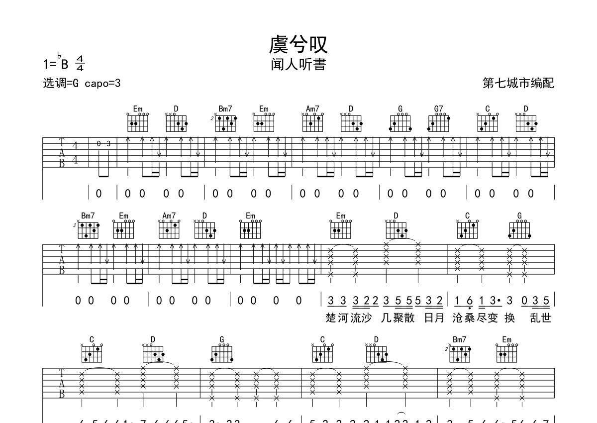 闻人听书《虞兮叹》吉他谱 - G调弹唱六线谱