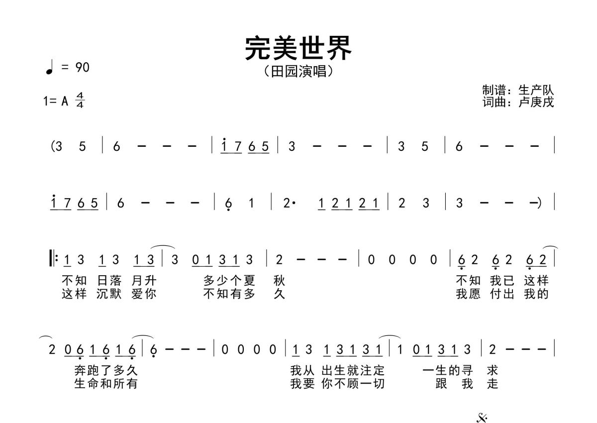 《完美世界(女版)》是女版演唱的一首歌曲,原版简谱,拍号为4/4拍,歌曲速度为每分钟90拍,这份简谱共有一张高清图谱,图谱由 @生产队 编配上传田园演唱的歌曲《完美世界》(女版)原版简谱,完整的前奏、间奏solo编配,精编完美版,优质推荐!。