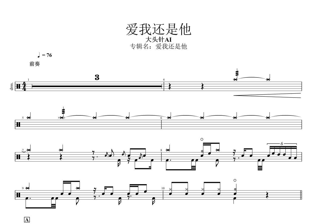 大头针Al《爱我还是他》架子鼓谱